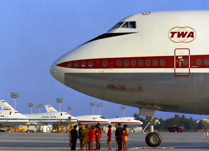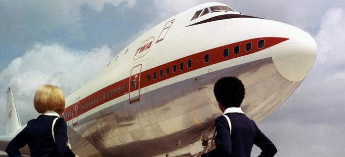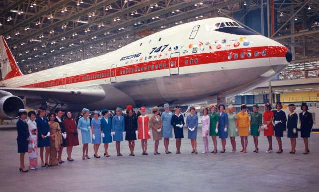 พิธีเปิดตัวต้นแบบ Boeing 747 ซึ่งจัดขึ้นที่เมืองเอเวอเรตต์ในปี 1968 มีพนักงานต้อนรับบนเครื่องบินจากสายการบินลูกค้าทุกแห่งเข้าร่วม